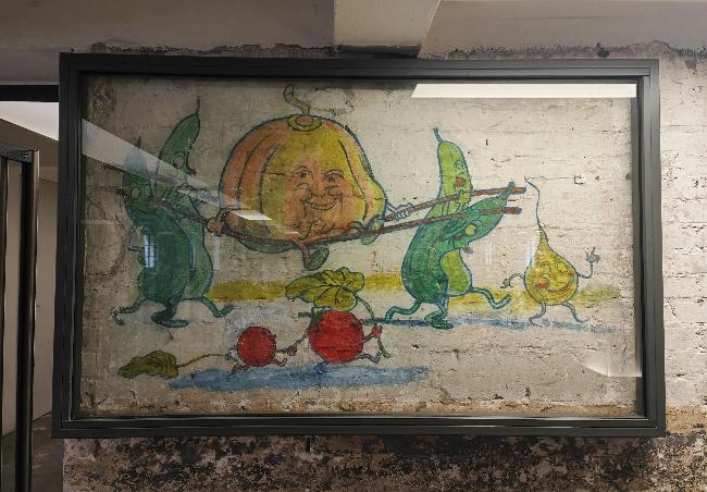 Strange drawings on the wall of Nazi camp kitchen
