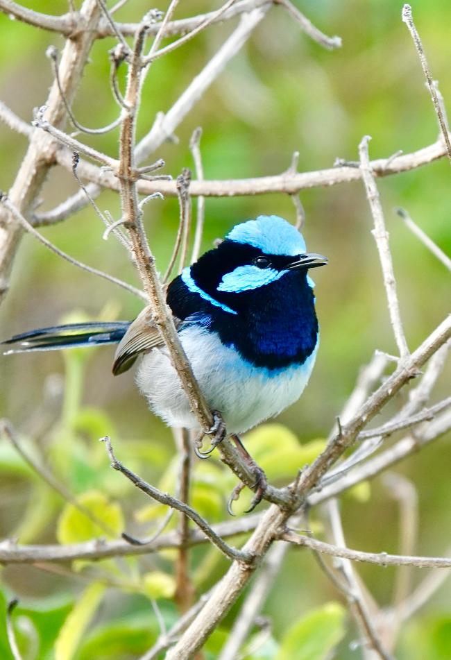 superb blue fairywren in bush